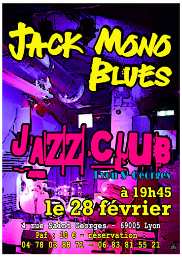 « …Jack Mono Blues entame sa trentième année d’existence, ma foi cela commence à compter !!! Trente ans et toujours plein de fougue pour le blues, nous avons le plaisir de commencer l’année par une prestation dans un club de jazz :